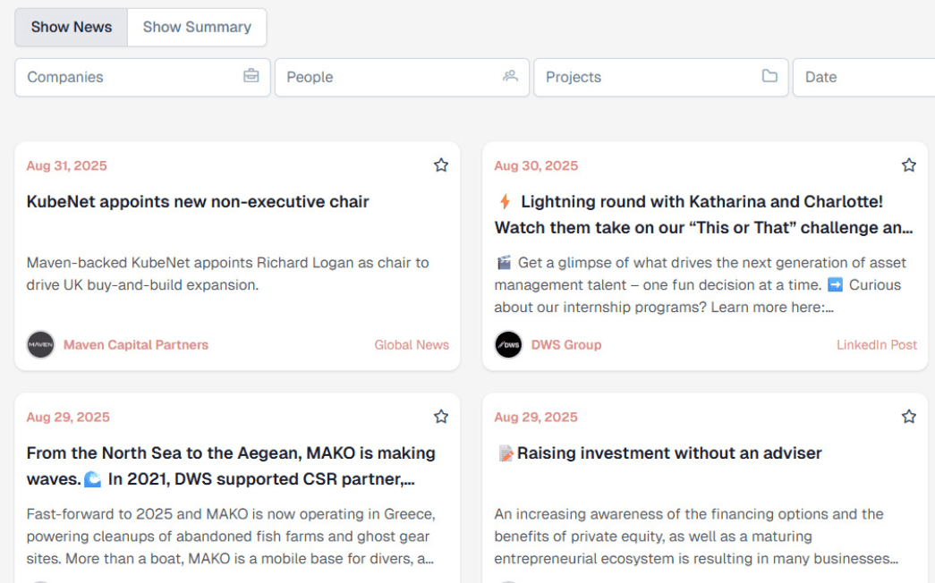 Monitor global news, websites, and LinkedIn — tailored to your watchlist